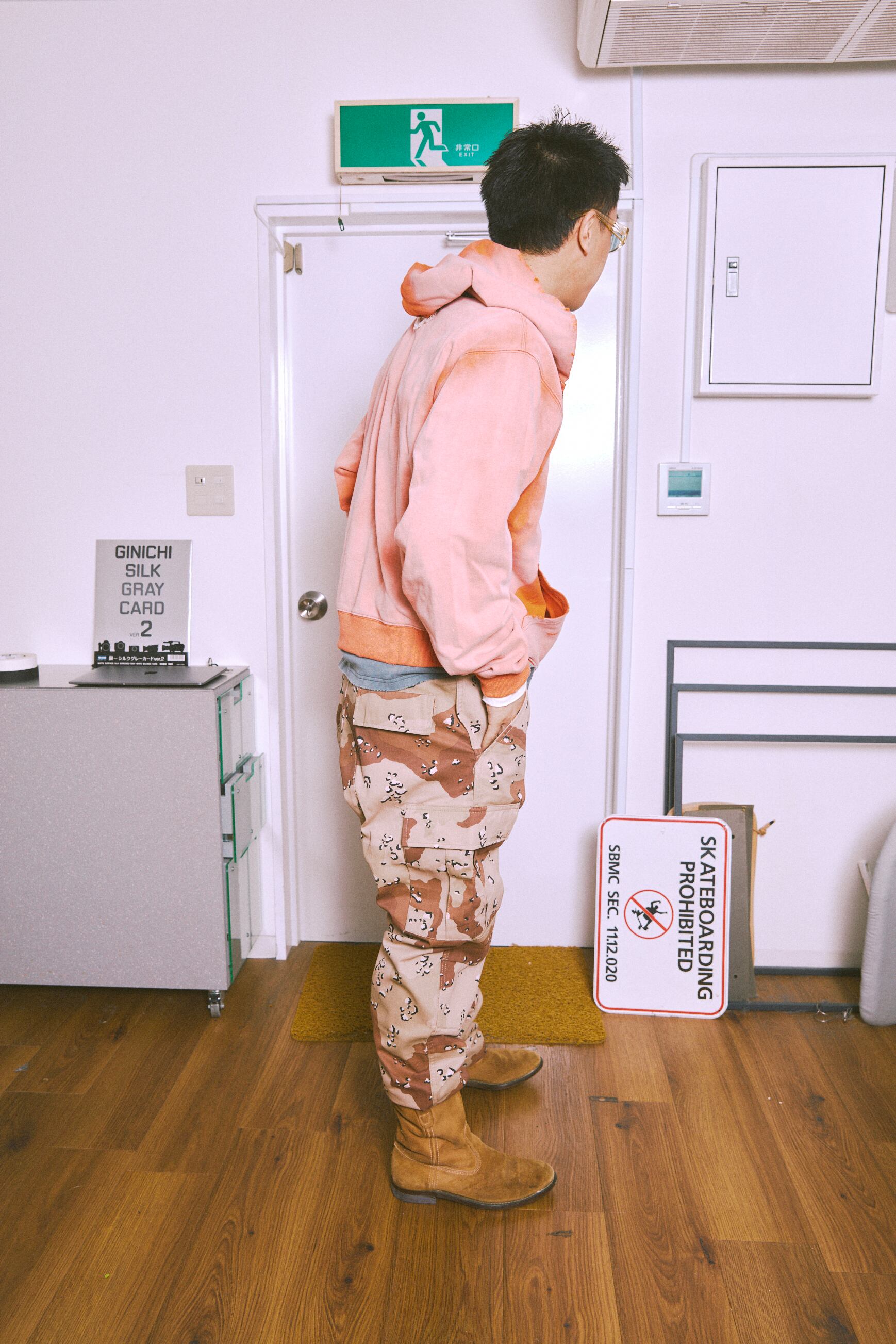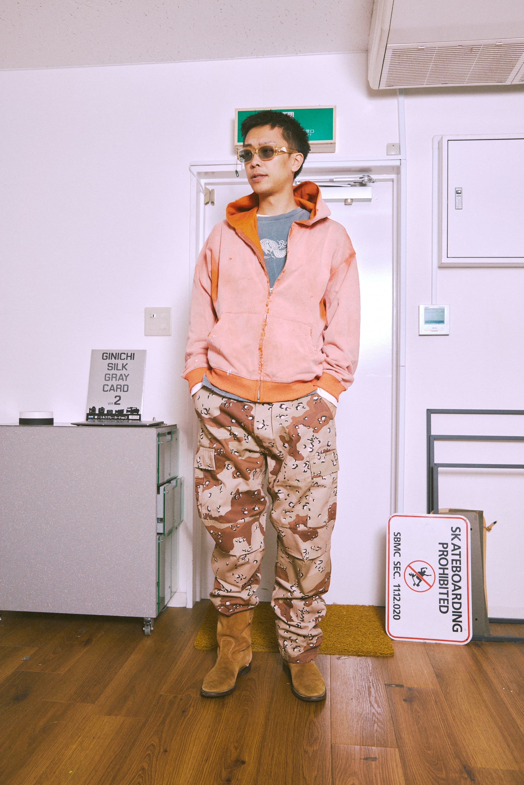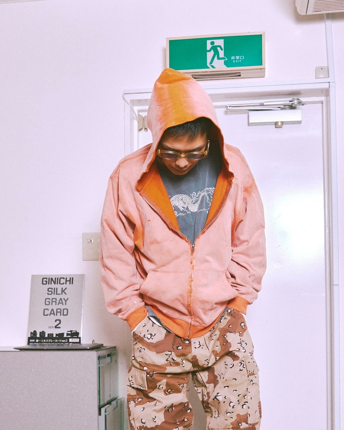 単丈仕様で、身幅を広くとったワイドシルエットのパーカーです。 フードは深めに作っています。